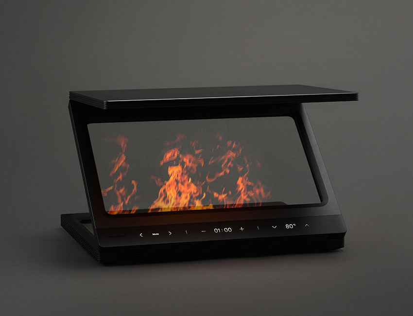 세계에서 가장 얇고 유연한 소재, 그래핀을 활용한 최초의 휴대용 난방기기입니다. Z자 형태 3단 구조로 각도 조절이 가능한 접이식 디자인을 갖추어 노트북처럼 언제 어디서나 펼쳐 사용 가능합니다. LCD 반사로 3D 홀로그램 이미지를 투사해 벽난로처럼 따뜻함을 느낄 수 있습니다.