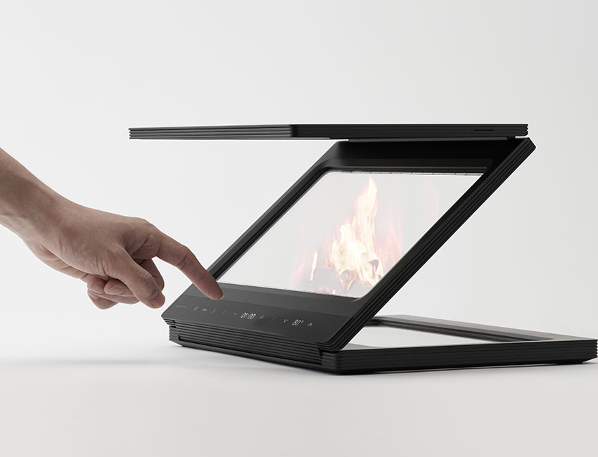 투명한 그래핀 히터와 홀로그램 불꽃으로 완성되는 가상 벽난로.